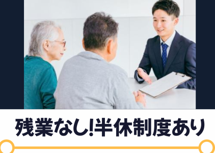 仕事内容 *未経験者歓迎!20~40代の男性活躍中! *正社員デビューを目指す方も大歓迎! *飛び込みなしのルート営業! *直行もしくは直帰OK!裁量が大きく働きやすい! *残業なしでプライベートも安心! *昇給/賞与/交通費/家族手当あり! //////////////// <電話でのお問い合わせ> 03-5858-8988(採用担当)まで //////////////// 【仕事内容】 <飛び込みなし/ルート営業> 仏壇や仏具、位牌、返礼品などのご提案および葬儀の費用に関する営業業務をお任せします。 具体的には… 〇仏壇や仏具、位牌、返礼品などのご提案 〇葬儀費用の回収 など ※葬儀やお通夜の運営や施工に携わることは一切ありません。 ※費用回収に関しても、お通夜の際に一度お客様にご挨拶を行い、顔合わせをしてから後日ご自宅に伺うのでお話も進めやすく、安心です!当社では顔写真付きの名刺を使用しているので、お客様にも安心していただいた上で提案を行うことができます◎ ◆担当エリア制:東京23区、埼玉県八潮市/三郷市 ◆1日0~5件程度をご訪問(社用車を使用) ◆個人ノルマなし!1チーム4~5名の2チームで編成されており、それぞれのチームでの目標が設定されているので、達成に向けてチーム全員で頑張るスタイルです!チームの成績に応じて歩合給も支給します! ~~ 仕事の流れ(一例) 葬儀をされるお客様の情報をいただき、お通夜の際に丁寧にご挨拶をしてから内金をお預かりします。その際に費用回収の日取りと仏具などのご提案を行うアポイントを決定します。 ↓ 葬儀の後日、お約束の日時にご自宅へお伺いし、費用をお預かりします。それに伴い、当社が扱う仏壇や仏具、位牌、返礼品などの資料をお見せしながら、お客様のご要望も聞きつつ丁寧にご提案を行います。 ↓ ご契約をいただいた商品を納品。お客様1組につき、平均2~4回程度のご訪問でご契約をいただいています。 ~~ 入社後について 入社後は商品や葬儀に関する知識やお客様とのコミュニケーションの取り方など基本的なことを丁寧にお教えします。その後、先輩営業との同行を通して実際の実務にも挑戦しながら少しずつできることを増やしていきましょう!難しい業務はなく、チームで助け合いながら業務を進める風土なので、未経験の方も安心の環境です◎ //////////////// 【裁量が大きいからやりがい◎!】 当社ではお客様とのコミュニケーションの取り方や働き方は基本的に社員一人ひとりにお任せしています。業務に慣れ、一人でお客様先へご訪問できるようになれば、お客様との信頼関係の築き方やペースはあなたが決めてOK!当社がお願いしたいのはただ一つだけ。お客様に対して誠実に向き合い、気配りを大切にしていただける方を歓迎します◎ //////////////// 【直行もしくは直帰OKで働きやすい!】 当社では仕事の進め方次第でフレックスのように自由度の高い働き方が可能!「14時に退勤」「15時に出社」をする方や「朝が少し早いので直行」もしくは「訪問時間が遅いので直帰」など、問題なく業務を行えるのであれば裁量大きく働くことができます♪ (本社での入金業務があるため、直帰した翌日は必ず出社となります。) //////////////// 【‘‘残業‘‘という概念がありません!】 働きやすさ抜群◎当社は「残業」という概念がなく、定時退社できるように本人・チームで時間配分をしながら業務に取り組んでいます!その他、「月8~10日休み」で休日も安定、「有給休暇」は取得率が高く、プライベートも大切にできる環境が整っています! さらに、「半日休暇制度」を導入しており、午前だけ・午後だけの出勤調整も可能!通院や役所での手続きなど、プライベートの予定と仕事の調整がしやすいのが魅力です。 //////////////// 【充実した待遇・福利厚生あり!】 「昇給年1回」「賞与年2回」「交通費支給」をはじめ、成績に応じて支給される「歩合給」や「家族手当」、「確定拠出年金制度」など充実した待遇が整っている当社。社員に対して感謝の気持ちを忘れず、当社はこれからも働きやすい環境づくりに注力し続けます◎ ////////////////