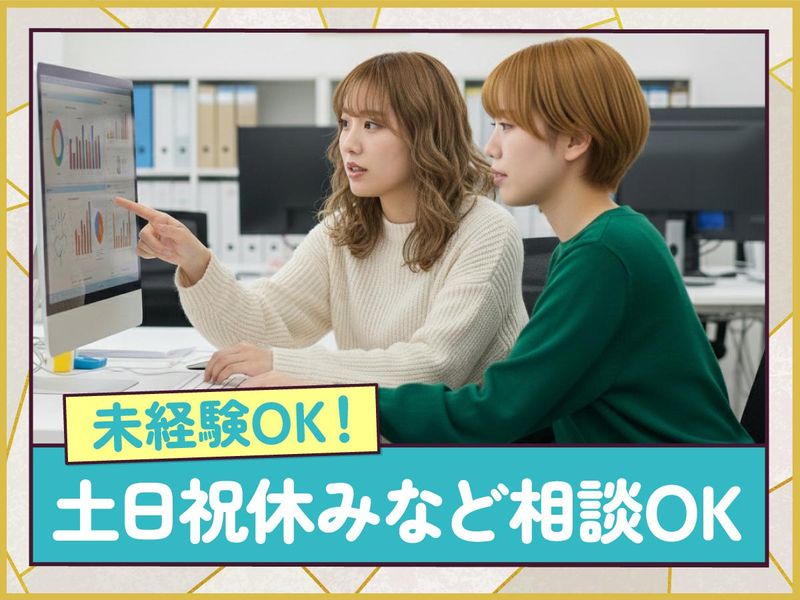 求めている人材 ・基本的なパソコン操作ができる方 ※マウス操作・ゆっくりキーボード入力 ※手元を見ながらでもOK ・明るくコミュニケーションが取れる方 <こんな方を歓迎します> *コツコツ・モクモクとした作業が好きな方 *未経験からオフィスワークに挑戦したい方 *ワークライフバランスを重視したい方
