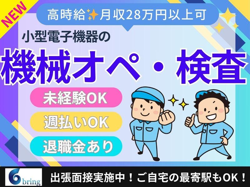 仕事内容 60秒動画掲載中!見てね~ https://youtube.com/shorts/Oa3lusk6V8M \この求人の3つのポイント/ 1. 40代5割+50代3割=8割が40代以上で同世代中心 同世代が多く話も合いやすく、派遣スタッフも7~8名程度在籍しており仲間と一緒に働けます。 製造業経験があれば、専任マンツーマン研修1週間で2週間後には独り立ち可能です。 2. 軽量プラスチック部品のシンプル作業 光ファイバー・スマホ部品に使われる軽量プラスチック部品を扱います。 重量物を扱わないため、長期間無理なく続けられます。 3. 6勤3休×想定月収27万円=通院も趣味も諦めない 6勤務後に必ず3連休が来るサイクルで、通院や趣味の予定が立てやすいです。 2交替勤務(日勤・夜勤)で想定平均月収は27万円程度。 GW・夏季・年末年始休暇、有給休暇も基本的に取得可能です。 【仕事内容】 光ファイバー・スマホ部品に使われる軽量プラスチック部品の製造作業です。 作業内容: ・機械に材料をセット ・ボタン操作で機械を動かす(機械オペレーター) ・出来上がった部品の目視・機械検査 ■扱う製品: 軽量プラスチック部品(光ファイバー・スマホ部品用) ■作業の特徴: シンプルな工程で、重量物を扱わないため長期間続けやすい環境です。 ■研修体制: 専任マンツーマン1週間、2週間で独り立ち \この求人に向いている方/ ✓ 同世代が多い職場を探している ✓ 製造業・工場勤務の経験を活かしたい ✓ 軽量部品を扱う仕事を希望している ✓ 6勤3休のサイクルで通院や趣味の予定を立てやすい働き方が良い ✓ 2交替勤務(日勤・夜勤)に対応できる 6勤3休のメリット: ✓ 毎回3連休で通院の予定が立てやすい ✓ 趣味や休息の時間をしっかり確保できる ✓ 連休が定期的にあるのでリフレッシュしやすい ✓ 2交替勤務で生活リズムが整う ■お問い合わせ■ フリーダイヤル: 0120-971-069(平日9:00~18:00) ※応募前の質問・相談も大歓迎です ※「求人を見た」とお伝えください オンライン面談実施中 履歴書不要・普段着でOK