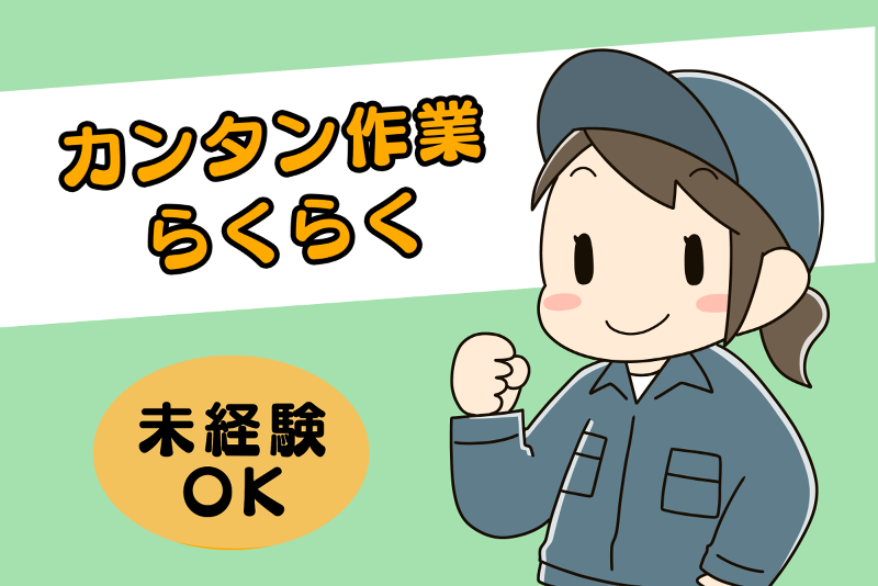 アピールポイント: ・一人モクモクとできる作業! ・単純作業で未経験の方でもOK! ・冷暖房完備で快適環境 ・重たいものナシ! ・適度に動けて運動不足も解消 《 職場の環境・雰囲気 》 ・無料駐車場あり ・制服無償貸与(上着) ・鍵付き個人ロッカー完備 ・屋外喫煙所あり ・食堂あり ・キレイな職場 (男女トイレ別) ・男女比 7:3