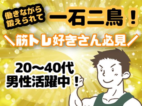 仕事内容 【新着!働きながら筋トレできるレア求人!】 即日勤務OK! 倉庫内作業未経験者さんも活躍中! 【倉庫内作業のお仕事内容】 物流倉庫での仕分け作業 レーンから流れてくる商品を、 カテゴリーや店舗ごとに台車に仕分けします。 取り扱う商品は ・飲料/ジュース、アルコール ・食品/調味料・お菓子 ・日用品/洗剤・シャンプー など! 商品の中には 2Lペットボトルが 6本入った段ボールなどがあります。 「普段から鍛えている」「スポーツが好き」という 20~40代の男性スタッフが活躍しています! 【未経験の方も働きやすい!】 男性スタッフが多い職場です! 先輩スタッフが丁寧に指導しますので 倉庫内作業や仕分け作業が初めての方も 安心してお仕事スタートできますよ! 【11:00~20:00の固定勤務】 日数は週4~5日! 希望休・固定休の相談もOK! 【こんな方におすすめ】 ・筋トレが好き/身体を鍛えている ・倉庫内作業に興味がある 【週払いOK】 急な出費があっても安心です! お気軽にご相談ください。 【応募後の流れについて】 ・応募後はWEB登録応募フォームをお送りいたします。 当社へのご来社や履歴書のご提出は必要ありません! まずはお気軽にご応募ください! 【LINE公式アカウントを始めました!】 求人情報を受け取るには下記URLより 友だち追加お願いします! https://lin.ee/Ig1nF8x