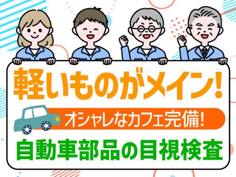 仕事内容 <主な仕事内容> 自動車部品の目視検査のお仕事です。 取り扱うものは軽いものが多いため、女性でも無理なく作業していただけます。 ・目視検品 ・梱包作業 ・箱詰め作業など <職場環境> ・20~50代が中心で活躍中! ・男女比は6:4で、男性が多数活躍してます。 ・部署間の連携がスムーズで、風通しの良い職場です。 ・未経験者歓迎!先輩社員が丁寧に指導しますのでご安心ください。 ・お洒落なカフェがありランチも充実しています。 <職場の声> 「自動車部品の検査って聞くと、ちょっと身構えちゃうかもだけど、扱うのは軽いものが多いから、ホントに無理なくできるんですよ。女性の先輩もテキパキ活躍してます!」 「休憩時間はカフェでゆっくりできるのが嬉しいポイント!美味しいランチでリフレッシュできるから、午後も頑張れるんですよね。」 「最初は不安もあると思うけど、きっとすぐに慣れて楽しく働けると思いますよ!ぜひ一緒に働きましょう!」 弊社営業担当者の引率で事前の職場見学を行いますので不安なく就労スタートして頂けます! まずは問い合わせのみでも大歓迎! お気軽にご連絡ください♪ ※22~翌5時の勤務は18歳以上の方のみ:深夜業のため(労働基準法第61条) <Q&A>入社までの流れについて Q. 応募してからどれくらいで働けますか? A. 応募から入社までは、1週間~通常2週間以内の現場が多くなっています。 Q. 急いで仕事を始めたいのですが対応してもらえますか? A. 即日面談やスピード対応が可能な案件もご案内可能! ご希望をお伺いして、最短で就業できるお仕事をご紹介いたします。 Q. 他の仕事と比較してから決めたいのですが、相談だけでも可能ですか? A. もちろん可能です。 複数の選択肢をご提示しながらご案内します! <Q&A>収入について 【お給料の支払いについて】 Q. 日払いは対応していますか? A. はい、日払いに対応しています。 前日の11時までに申請⇒当日の夕方までにお給料をお受け取りいただけます。 Q. 夜勤の場合でも日払いは可能ですか? A. はい、夜勤後も対応可能です。 お仕事終了後、朝11時までに申請⇒その日のうちにお給料をお受け取りいただけます。 Q. 前払い制度はありますか? A. ご利用可能です。 詳細は勤務先や就業形態によって異なりますので、ご相談時にご希望をお伝えください。 Q. 申請方法は難しいですか? A.どなたでもスムーズにご利用いただけます。 スマートフォンやPCからの申請も可能です!
