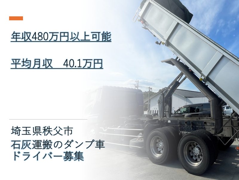 仕事内容 \\ 正社員大型ドライバー大募集// 「長距離運行なし!」「手積/手卸なし!」 「年間休日105日!」「納入先が少ない!」 出荷・納入先での待機や作業が少ないんです =働きやすい環境で定着率も高い職場です= <仕事内容> 石灰のダンプ車配送をお任せします *手積・手卸がないため、体の負担は少なく どなたでも長く勤められます! 【配送エリア】 配送エリアは関東一円。 納入先が非常に限られており、ルールや道を 把握しやすいです! *短・中距離配送で2日運行等は一切なし! 全て当日終了です。 【出発時間目安】 石灰(ダンプ車)配送 出勤時間目安 :夜2時頃 石灰運搬やダンプ車の経験がない... 全く心配はありません!複雑な操作は無し! 重労働な作業はなく女性でも安心! 同乗研修もある為、未経験の方でも安心! 弊社社員も最初はみんなが未経験でした! <ここがポイント!> *未経験OK・ブランクOK *手積み・手卸なし *長期休暇あり *年間休日105日 *研修制度充実 *資格取得支援制度あり(規定) *通勤交通費支給 *年2回の賞与制度 *退職金制度あり(規定) *大手企業と取引多数の安定企業 <当社の強み> 創業から72年の当社。 Gマーク(安全性優良事業所)認定に加え 大手上場メーカーの元請企業に属しており 業績及び仕事量共に安定してます。 その他、多岐にわたるグループ会社(※) を有し、地域に根差した安定企業です。 ※ガソリンスタンド、ゴルフ場 三菱自動車ディーラー、病院