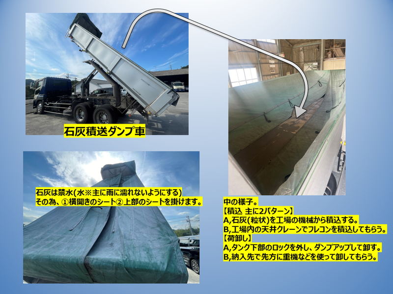 勤務時間詳細 総労働時間:1ヶ月あたり173時間 ・石灰配送/ダンプ車 出勤時間目安 :夜2時~3時 拘束時間(休憩込) :12時間程度