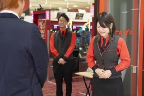 仕事内容 地域と共に歩む _____ パーラー太陽 _________ パチンコ店のイメージあるある… うるさそう… タバコくさそう… なんとなく怖そう… 玉いっぱい積んだりする…? 実 際 は ! ★遊技台は各自音量調節◎ ★フロア内完全禁煙◎ ★客層も意外と穏やか◎ ★玉運び・重労働なし◎ <例えば早番の場合>・・・・・・・・・・ 8:30~開店準備 ■異常がないかチェック! 9:00~ホール巡回 ■利用後の台清掃、アルコール消毒 10:15~1回目休憩10分 ■全員ではなくローテーションで入ります 10:25~ホール巡回 ■遊技台の呼出ボタンが光ればお客様の元へ!玉詰まりなど台のトラブルがあれば対応 11:30~2回目休憩20分 11:50~ホール巡回 ■メダル計数・機械に入れて レシートにサイン 13:15~3回目休憩15分 13:30~ホール巡回 ■カウンター業務(お菓子など景品お渡し) 14:30~4回目休憩15分 14:45~ホール巡回 ■遊技台に空き缶が…! 玉が残っていないか確認し片付け 16:00~遅番との引継ぎ・ホール巡回 16:30 退勤 ・・・・・・・・・・・・・・・・・・・・ こまめに休憩に入れるのがうれしい! *巡回時の対応はどのシフトも一緒です *遅番は閉店作業・告知物交換・のぼりの片付け・週1回新台入替 ・・・・・・・・・・・・・・・・・・・・ <入店後、覚えること> ●店舗のホール全体の配置 ●貸玉・貸コインの出し方 など 基礎的なことから! 1人では対応しきれない、困ったことが あればすぐに「インカム」で先輩に報告! ・・・・・・・・・・・・・・・・・・・・ 太陽グループは地域に望まれ・親しまれる会社を目指し、会社設立から36年。 社員に対し「給料を払っているのだから働いて!」という姿勢ではなく、誇りを持って働くことのできる環境を提供したいという考えが現在の働きやすさに繋がっています。