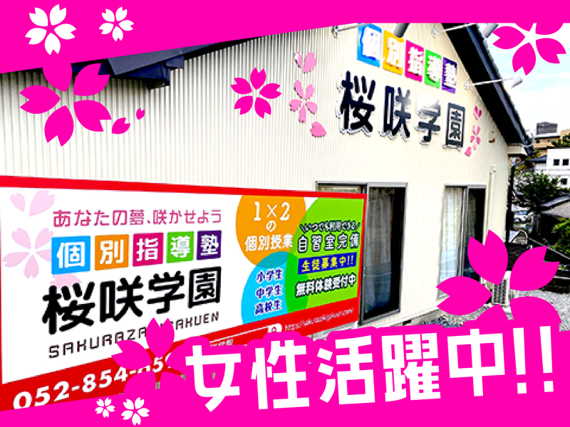 仕事内容 ★平日のみ1日5時間勤務の正社員募集★ ゜+.――゜+.――゜+.――゜+.――゜+ 人と関わる中で成長できる 「先生」になってみませんか? ゜+.――゜+.――゜+.――゜+.――゜+ ■私たち、「塾の先生」がやるべきこととは? 「生徒の成績アップ」「生徒の志望校合格」 もちろんこれらの”結果”は大切なことです。 でも本当に大切なのは、 その結果にたどり着くまでの”過程”と ”夢や目標を叶える力”だと 私たちは考えます。 勉強をする中でうまくいかないことや 思うように進まないこともきっとあります。 そんなときに、 その壁とどう向き合って、どう乗り越えたか__ そこにこそ、大きな成長のチャンスがあり、 人生の喜びがあると思います。 「生徒それぞれが持つ夢や目標を叶える力になりたい。 努力し成長していける喜びを伝えたい。 誰だって変われることを教えたい。1人じゃない。」 この想いを持ち、 生徒に寄り添いともに成長していきましょう! ■生徒だけでなく自分も成長できる! 「生徒との接し方」や「伝える力」など これからの人生に役立つスキルが 自然と身につきます! 一人一人にとっての「いい先生」を目指して 私たちと一緒に成長していきましょう! ■具体的な仕事内容 基本は中学生対象。 1対1もしくは1対2での 個別指導をお願いします。 生徒ごとに性格や、得意・不得意が異なるので それを把握・理解するところから始めていきましょう◎ ■サポート体制は万全! 「塾講師やバイトは初めて…」 「人に教えるのって不安…」 そんな方も大丈夫! 充実した研修とサポート体制があるので、 未経験でも安心してスタートできます。 得意な教科から始められますし、 中学の「英語」・「数学」がある程度 理解できれば大丈夫です◎ 最初のうちはしっかり作られた マニュアル通りに行えばOK!! (解答もすべて準備された上で臨めます) 定期的に教え方の共有やミーティングも 行っています! ■かけもちOKの正社員募集 1日5時間勤務という働き方を活かして、 昼は飲食店とかけもちしている先輩や、 完全にプライベートを重視し、趣味の時間に 充てている先輩などが活躍中! 「働き方の幅が広い」職場です。 ■うれしい特典♪♪ 桜咲学園は名古屋港水族館のサポートなので 働いている先生は無料で利用することができます!