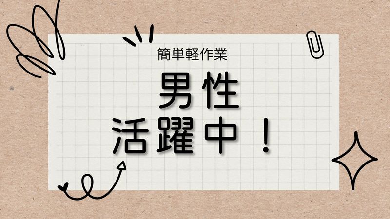 PR・職場情報 20~40歳の男性活躍中! 求人ポイント 交通費支給,即日勤務OK,急募,主婦・主夫歓迎,長期,フリーター歓迎,学歴不問,残業月20時間以内,転勤なし,未経験者歓迎,経験者歓迎,ネイルOK,有資格者歓迎,社会保険完備,制服貸与,家庭都合休OK,禁煙・分煙,長期休暇あり,髪型・髪色自由,固定時間制