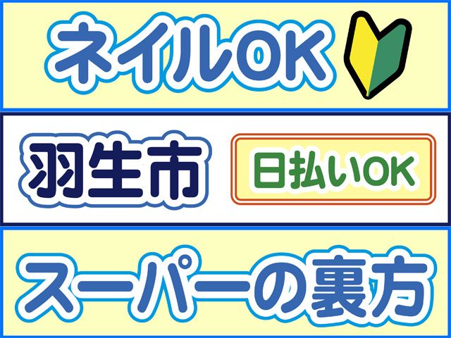 大手スーパーでの裏方作業 未経験OK、ネイル・ピアスOK、髪色自由! 履歴書不要/日払いOK