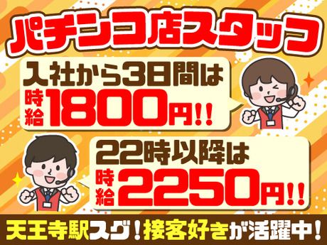 【天王寺駅スグ】未経験でも特別時給1800~2250円★週3日~シフト自由!接客スキルが身につく◎