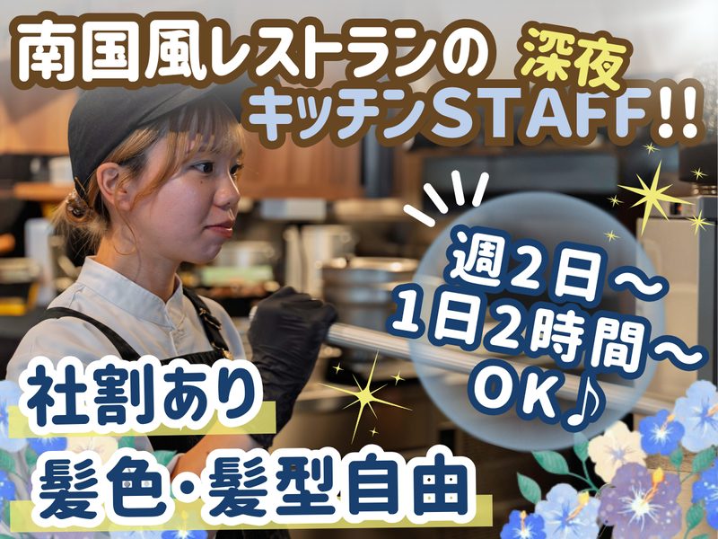 求めている人材 ✨╲ 人柄重視で採用中 ╱✨  ̄ ̄ ̄ ̄ ̄ ̄ ̄ ̄ ̄ ̄ ̄ ̄ ̄ ̄ ̄ ⏩飲食・接客経験不問!初バイトもOK ⏩年末年始、深夜勤務できる方大歓迎! ⏩扶養内・WワークOK ⏩「南国っぽい雰囲気が好き!」 「人と接するのが好き!」という方歓迎! <こんな経験・資格を活かせます> ●調理スタッフ ●調理師 ●調理補助 ●学校給食 ●栄養士 ●給食作り ●社員食堂 ●カフェ ●洗い場 ●居酒屋 ●飲食店ホール アルバイト・主婦パート・正社員・ 中高年・シニア・大学生など、 様々なメンバーが活躍しているお店です。 お客様も優しい常連様ばかり。 ワイワイ楽しく働きたい方にも 当店はピッタリです★