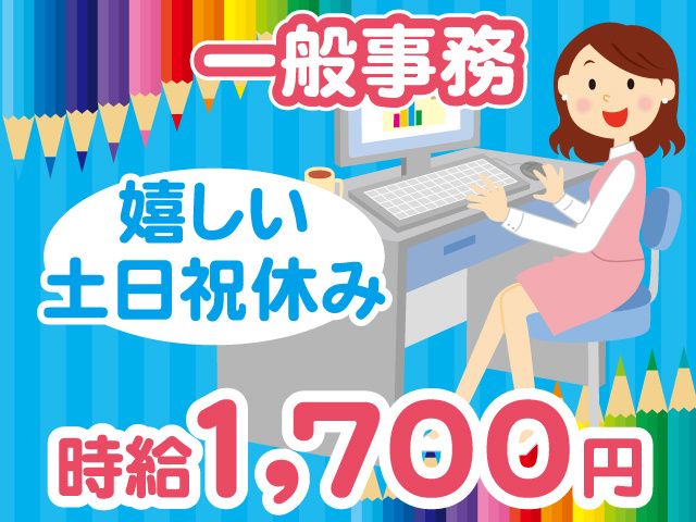 仕事内容 安定企業で、事務のお仕事始めませんか? 20代~50代まで幅広い年代が活躍中! 日払い・週払いも可能◎ 駅チカで通勤ラクラク 土日祝休みでプライベート充実 高時給1,700円でしっかり稼げる 教育体制ばっちり&サポート万全! <具体的には…> ・書類作成(出荷指示書や伝票など) ・請求書や精算書の処理、ファイリング ・電話やメール対応(内容の取次ぎが中心) ・データ入力 など Excel・Word・メールソフトを使った作業が中心ですが、 社内専用システムも使用します。 こちらは皆さん初めて触れるので、社員が丁寧にレクチャーします。 <ガッツリ稼げます!> 完全未経験でも高時給1700円! 無理なく月収30万円以上も可能です。 【月収例】 13,600円(1日)×21(出勤日数)+残業10(時間)=306,850円 <未経験OK!> 「初めての職場は不安…」という方も大丈夫。 職場には弊社スタッフもいるので、困ったことがあればすぐ相談できますよ。 将来にも役立つスキルを、働きながら少しずつ身につけていける環境です。 「ブランクがあるけど、 アルバイト・パートの経験や 事務経験を活かして働きたい」 「地元で仕事を探している」 「データ入力や書類整理が得意」 「新しいことにチャレンジしたい」 など 志望動機はなんでもOKです! <うれしい日払・週払OK> 「すぐにお金が欲しい」という方や 「月末まで待てない」という方は 日払・週払で即お給与GET WEBでの面接も可能ですのでお気軽にご応募ください。