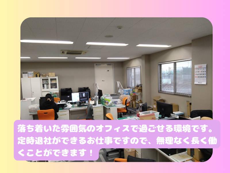 求めている人材 【このような方におすすめです】 ・久しぶりにお仕事復帰を考えている方 ・一般事務の経験を活かしてパートで働きたい方 ・家庭や子育てと両立できる環境を探している方 一般事務のご経験があればご応募いただけます。 ブランクがある方も歓迎いたします。業務は一つずつ丁寧にお伝えしますので、安心してスタートできる環境です。 お休みの調整がしやすく、急な予定にも相談しやすい体制を整えています。 無理なく、長く続けていただける職場です。 【一緒に働くメンバー】 30~40代の女性スタッフ3名が在籍しています。 落ち着いた雰囲気の中で、声を掛け合いながら協力して業務を進めています。分からないことも相談しやすい環境です。 【お任せすることについて】 ECサイトの受注管理や在庫管理など、事務業務が中心です。 普段利用しているネットショップの仕組みを、実務を通して理解できるのもこの仕事の魅力です。 使用するシステムは、操作に慣れれば難しくありません。 特別な専門知識や高度なスキルは不要です。 「まずは無理のない働き方から始めたい」という方にも適したお仕事です。 性別の条件と理由:女性歓迎(ポジティブアクション)
