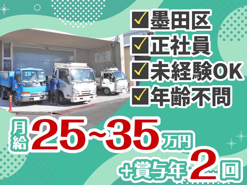 仕事内容 「正社員として安定して働きたい」 「でも何をしていいか分からない」 「何が向いているかも分からない」 「経験や資格にはそんなに自信がない・・・」 そういったことでお悩みの方に、 一度、話を聞いてほしいと思っています! 企業が出すゴミを 「産業廃棄物」と言いますが、 あなたにお任せするのは、 その回収と分別のお仕事です♪ ⏩経験不問 ⏩普免でOK ⏩夕方には終業 ⏩20代・30代・40代活躍中 <<✨意外性抜群の仕事です>> ✅コミュニケーションが大切 取引先の企業とのやり取りはもちろん、 チーム制での仕事だから、 移動中の会話が楽しかったりします! 「コツコツ・モクモク働く」 という面もあるのですが、 仕事中はリラックスしながら、 仲間との会話を楽しめますよ! ✅キレイ好きな方にぜひ ゴミの分別をする仕事なので、 几帳面さだったり、 そのあたりがちゃんとしていると、 かなり有利です! ✅人間観察が好きな方にもぜひ 芸人をしながら、 廃棄物収集の仕事をされている方が 出した本の中でも触れていましたが、 「ゴミの出し方で人が分かる」 「分別が行き届いている会社は業績がイイ」 「逆の会社は廃業することも珍しくない」 というのは、かなり当たっています! 地味なんですけど、 その街や地域の本当の姿を知ることができる 面白い仕事だと思います◎ <<✨難しい仕事はありません>> 墨田区を中心とした 近隣エリアでのゴミの収集の仕事です! ▼2t車や4t車でゴミを回収 ▼倉庫での荷下ろしと分別 ▼最終処分場への運搬 最初は先輩が運転する車に同乗しながら、 仕事を覚えていただきます! ルーティンワークが好きな方にも ご満足いただけると思います◎ <<✨気楽に、あなたらしく>> 最低限のルールは守る必要がありますが、 そんなに堅苦しい職場ではなく、 勤務時間もそこまで厳しくはありません! ご自身の体調管理に気をつけながら、 ムリのないペースで続けていってください♪ <<✨長く続けるのにイイ仕事です>> 人間社会が続く限り、 ゴミの収集やリサイクル作業が なくなることはまずあり得ません! 地域社会の環境維持に貢献し、 地道に続けていける仕事ですし、 話が面白い気のイイ仲間もいて、 楽しく働ける仕事だと思いますよ◎ <<✨ゆくゆくは働き方を選択できます>> もともと夕方早めに終わる仕事ですが、 「午前中で終わる仕事がしたい」 「14時には仕事を切り上げたい」 「週休3日制の仕事に興味がある」 といった希望をお持ちの方は 遠慮なくご相談ください! 将来的に契約社員になって、 好きな働き方をお選びいただけますよ♪ <<✨活躍中の先輩たちは・・・>> 「前職は人間関係で辞めてしまった」 「今は同僚との普段の会話が楽しい」 「誰かの役に立つ仕事がしたかった」 いろいろな想いをもって、 当社に来てくれた先輩たちが、 たくさん活躍しています! 事務や販売、営業、接客、清掃、警備など みんなの前職もさまざまなです。 あなたも自分を活かせる場所を 当社で見つけてみませんか?