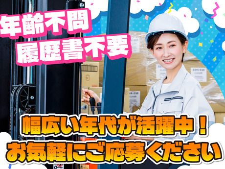 資格 ★要フォークリフト免許(経験不問) ┗経験者は優遇いたします!※カウンターフォーク不可 ★週3日から、土曜勤務のできる方歓迎! ★長期勤務をお考えの方 経験の浅い方、ブランクのある方OK! 30代・40代・50代・60代活躍中! 【こんな方を歓迎します】 ●フォークリフト免許を活かして働きたい方 ●安定した職場環境で安心して働きたい方 ●高時給でシッカリと稼ぎたい方 ●ブランクのある方やWワーク(スキマバイト)さん ●ハローワークでお仕事を探している方