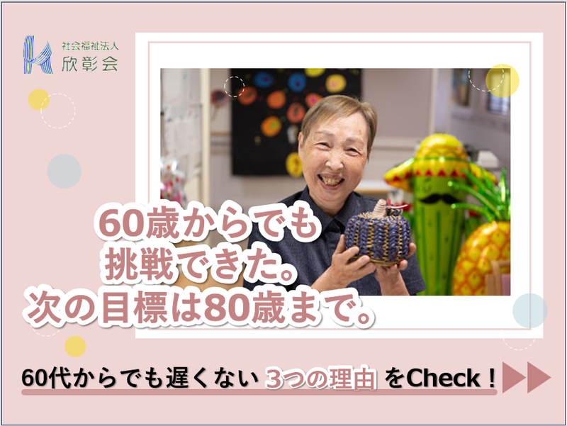 仕事内容 ::.。.: .。.: .。.: .。.::.。.: .。.: .。.: .。.::.。.: つよく、やさしく、明日へつなぐ人になる。 これからの社会に欠かせない 「介護業界」だからこそ、欣彰会は、 働く職員それぞれが持つ 「らしさ」を活かすことができ、 長く働きやすい職場作りを行っています。 職場見学・お仕事体験(半日or1日)も 受け付けておりますので、 介護職・欣彰会(きんしょうかい)に 少しでも興味のある方は、 ご相談お待ちしております。 ::.。.: .。.: .。.: .。.::.。.: .。.: .。.: .。.::.。.: ―⭐アピールポイント⭐―――――― ✅週2日~、1日4時間~OKで、 家庭との両立も◎ ✅様々な研修・資格取得支援を実施し 介護職としてのスキルアップも可能◎ ✅産休/育休/介護休暇など 福利厚生も充実! ✅ライフステージに合わせて 常勤or非常勤を選択可能! ✅60代シニアも活躍中で、 長く腰を据えて働ける環境です◎ ✅ブランクなど、不安のある方も お気軽にご相談ください◎ ――――――――――――――――― 【✨仕事内容✨】 特別養護老人ホームにて 介護業務や各種イベントの企画運営を お任せします。 特別養護老人ホーム(従来型)にて、 入所者の生活援助や、生活の質の向上・ 活性化を目的としたレクリエーションや アクティビティ―の企画・準備を行い、 一緒に参加しながら、楽しむ時間を 利用者の皆様と共有します。 直接的ケアと、間接的業務があります。 <具体的には・・・> ・利用者への食事介助と口腔ケア ・排泄や入浴などの際の身体介助 ・レクリエーションの実施 ・介護記録 など 食事や身体の介助では、 入居者さんそれぞれに最適な支援を 行います。 利用者の皆様に対して、直接的ケアを 提供する場面では、その人らしさを尊重 できるように、個別ケアを意識して 行っていただきます。 <施設情報/職場の特徴> 施設は、4つのフロアに分かれており、 居室は多床室と個室が設置されています。 介護職員、看護職員、相談員等 多職種連携を図りながら、利用者の 皆様にとって安心安全である、生活環境を 提供しています。 就職後に研修を受けることが できますので、資格の無い方も 安心して働くことができます♪ 介護職から介護支援専門員 の資格を取り、相談職に就いている 先輩職員もいますよ! =================== 【✨職場環境✨】 ■イベント・行事 年間を通して、季節ごとのイベントや 外出行事などが行われます。 (例:お正月、お花見、納涼会、敬老会、 運動会、文化祭、芋ほり、忘年会など) また、地域で開催されるイベントへの 参加や、近隣の公園・スーパー等への 外出行事を企画・運営し、利用者様と 共に楽しめる時間を大切にしています。 ■ICT・介護ロボットの導入 当施設では、業務効率化と質の高い ケアの提供のため、ICTの導入を 進めています。 日々の記録や介護、看護、医療情報の 情報共有をスムーズに行うため、 タブレットやパソコンを活用し、 リアルタイムな情報を入力することで 職員間の情報共有がスムーズに行われます。 また、見守り支援として 介護ロボットを導入しています。 利用者様の眠りの質・呼吸数・心拍数の 可視化により、職員の目視による 状態観察に加え、データ分析された 情報から個々の睡眠リズムを把握 できます。 夜間に覚醒するタイミングが タブレット上で確認できるため、 先回りの対応が可能となり、転倒などの 事故防止に繋がります。 さらに呼吸数や心拍数の変化により 体調変化にも気づきやすくなり、 職員やご家族の安心をはじめ、 利用者様の生活の質の向上に 大きな効果をもたらしています。 ■使用ツールについて 操作方法は誰もが使用しやすく、 わかりやすいシステムになっています。 タブレットやパソコンが苦手な方でも、 丁寧に指導させて頂きますので 安心してください。 =================== 【✨研修制度✨】 欣彰会は階層別、テーマ別、職種別に 数多くの研修を行っています。 代表的な研修をご紹介します。 ■新人研修 4〜8月まで行われ、最初の2日間は 大宮共立病院グループとの合同研修です。 その後欣彰会として、 法人理念や福祉人としての心構えを 学ぶ研修に取り組み、配属先での OJTへと続きます。 秋にはフォローアップ研修もあります。 ■階層別研修 2~5年目、リーダー、主任、課長・施設長 などの階層に応じた研修が行われます。 ■テーマ別研修 セキュリティ、メンタルヘルス、 AED(救急法)などのテーマ別研修があります。 ■職種別研修 相談員・介護支援専門員研修など、 職種に応じた研修があります。 =================== 【✨資格取得支援制度✨】 働きながらも資格取得を目指せるよう、 取得金の補助や対策講座の開催など、 キャリアアップを目指せる環境を整えています。 ■実務者研修 介護福祉士取得のための研修です。 対面・通信教育の研修です。 ■介護福祉士受験対策講座・模試 どちらも試験までに数回開催されます。 ■介護支援専門員受験対策講座・模試 介護支援専門員(ケアマネジャー) 合格のための支援