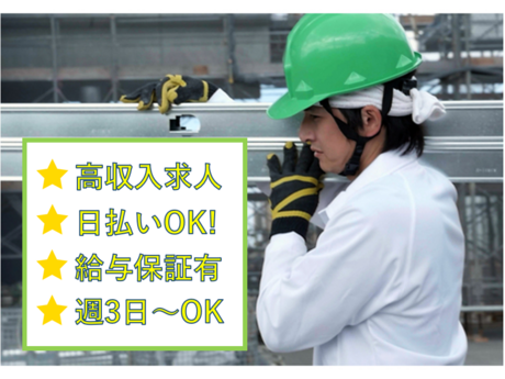 仕事内容 ●チ-ム作業(3~6人)なので未経験でも安心! 資材を運ぶだけの簡単作業!体を動かすのが好き!働きながら体も鍛えたいなど、動くお仕事をお探しの方におススメです! ほとんどのスタッフが未経験からのスタートです。建築中のマンションやビルなどの内装資材を、3~6名のチームで車輛から降ろし運び込むお仕事です!(アルバイト・パート募集) 難しい作業はなく、全ての資材搬入が終わったらお仕事は終了です!チームでサポートし合って動くので安心ですし、1現場4時間分の時給を保障していますので、早く仕事が終わっても、効率よくしっかり稼ぐことができますよ。 ●日払いOK!直行直帰OK! 1日2~3現場だとかなりの高収入を稼げます!しかも、契約時間内より早く終わっても契約時間分(4時間)の給与が保障されるので1~2時間で終わっても4時間分の給与をGET可能! 週3日~のレギュラー勤務でガッツリ稼ぎたい方にはおススメのお仕事!面接時の履歴書も不要です。 通勤は基本直行直帰なので営業所に出社する必要はありません!勤務現場も県内各地にあり、通勤可能な現場で皆さん働いていただいています! ●お仕事の流れ [1]作業場のマンション・ビル等に直行 ▼ [2]内装資材をトラックから降ろして建物の中に運び込みます。 ★運ぶものは…家具、扉、壁天井ボード、照明器具など、小さなものから複数人で運ぶものまで様々です。 ★部屋はスケルトン状態からほぼ出来上がった段階まで様々!エレベーターのある建物が多いです。 ▼ [3]事前にシフト提出していた時刻が来たら、作業途中でも上がってOKです! <スタッフに聞いたQ&A> Q.現場の雰囲気はどうですか? A.厳しい指導なのかなと思っていましたが、いい意味で期待は裏切られました(笑) 一緒に食事にいくほど仲良くなった人もいます!教え方も丁寧で、分かりやすいです◎ Q.ここで働いていて良かったことは? A.建物が完成する過程を見られることってなかなかないので、面白いです! あとは気づいたら細マッチョに近づいてました(笑) ■ミッドアルファでは実際のお仕事を知っていただくために、動画更新もおこなっています。気になる方は下記のURLをコピーしてご覧ください! [1]]荷揚げの特権!終わらせたら早く帰れる! https://www.tiktok.com/@mid_a_/video/7255222129929637122?is_from_webapp=1&sender_device=pc&web_id=7246567919814821377 [2]荷揚げあるある!意外と優しい先輩が多い! https://www.tiktok.com/@mid_a_/video/7271944854555380993?is_from_webapp=1&sender_device=pc&web_id=7246567919814821377 その他にも多数動画ございます!<請負のお仕事>