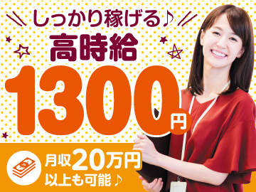時給1,300円 ■給与 時給 1,300円 ◆月収例(月20日計算) 時給1300円×実働8h×20日=208,000円 ※交通費規定支給あり ◆1ヶ月毎に皆勤インセンティブ(3000円)支給 ◆評価制度により随時時給UPあり 給与:月末締め翌15日支払い