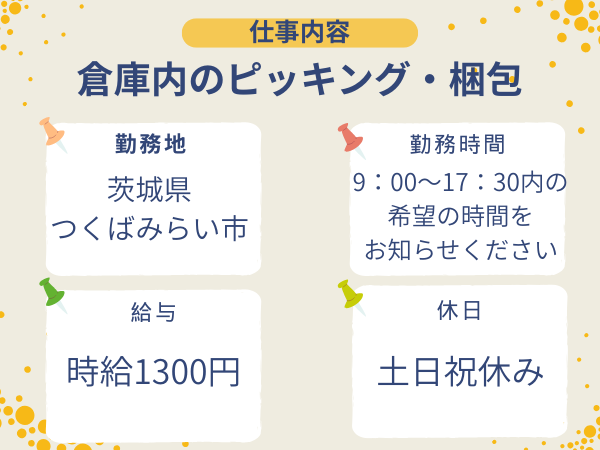 日勤 倉庫でのピッキング・梱包