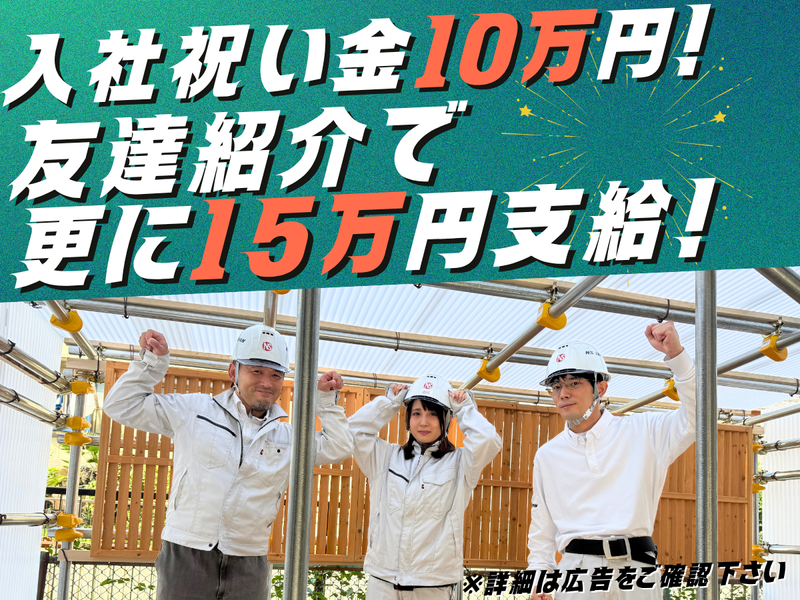 【保険制度】 雇用保険、労災保険、健康保険、厚生年金 待遇・福利厚生 【福利厚生】 ◆社会保険完備 ◆最新モデルの空調服支給 ◆ヘルメット・作業服貸与(規定あり) ◆交通費規定支給(1日800円) ◆髪色自由(派手髪OK) ◆タトゥー・ピアス・ 髭・ネイルOK(長くなければ可) ◆資格取得支援/当社全額支給