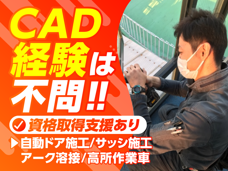 仕事内容 \未経験から技術が身につく!/ ✅製作~取付まで一貫して学べる ✅2人1組のチーム作業で安心◎ ✅資格取得支援でスキルアップ可能 ✅安定した案件数で腰を据えて働ける 1998年に設立し、今年で28年目の会社◎ 「手に職をつけたい」 そんな方をしっかり育てる環境です✨ *-*-*-*-*-*-*-*-*-*-*-*-* 【⏩仕事内容】 店舗フロントサッシ・自動ドア・ ステンレス金物などの製作~取付を チームで行います! ■工場内での製作・加工  ̄ ̄ ̄ ̄ ̄ ̄ ̄ ̄ ̄ ̄ ̄ ̄ ・サッシや金物の組立 ・角パイプ等のカット ・溶接、研磨、仕上げ ※基本は1日1案件を丁寧に製作します ※ゆくゆくは受発注業務や、 図面の作成等もお任せします ■現場での取付・修理  ̄ ̄ ̄ ̄ ̄ ̄ ̄ ̄ ̄ ̄ ̄ ̄ ・製作した製品の現地取付 ・自動ドア、各種ドアの修理 ・既存設備のメンテナンス ※基本は1日1現場/2人1組で対応 ※エリア:都内中心+関東一円 (東京/千葉/茨城/神奈川) 【⏩入社後の流れ】 ▼入社直後 製作サポートから開始! 物の名前や工具の使い方など、 基礎を覚えます。 ▼1ヶ月目 現場の補助に入り、 作業の流れや施工手順を実践で習得。 ▼3ヶ月目 先輩と組んで、 できる工程から任せていきます。 ▼6ヶ月目 簡単な案件は徐々に単独対応へ。 困った時はすぐ相談OK◎ ================== ╭━━━━━━━━━━━━━╮ 異業種からの転職者も活躍中 ╰━v━━━━━━━━━━━╯ 前職はビジネスホテルのフロント勤務。 「日本のモノづくりに関わりたい」 「手に職をつけたい」 という想いで転職した先輩も活躍中です。 異業種からのチャレンジでも、 着実にステップアップできます✨ <資格取得支援あり!> 未経験からのチャレンジも会社が後押し! 働きながら手に職をつけられますよ◎ ╭━━━━━━━━━━━━━╮ 見えない場所に、技術あり。 ╰━v━━━━━━━━━━━╯ 自動ドアや設備の仕上がりに 足を止めて感動する人は多くありません。 でも“当たり前に使える”状態をつくるには、 ミリ単位の調整と高い精度が必要です。 私たちがこだわる理由は一つ。 「自分が納得できる仕事をしたい」 その想いで、日常を支えています!