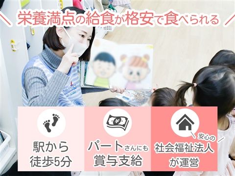 就職祝い金・賞与あり◆栄養満点の給食が格安で食べられます★社会福祉法人で安心◎時給1485円~1885円◎駅から徒歩5分!土日祝休み♪【品川区南品川・認可保育園・新馬場駅・保育士(シニア)・日勤パート】