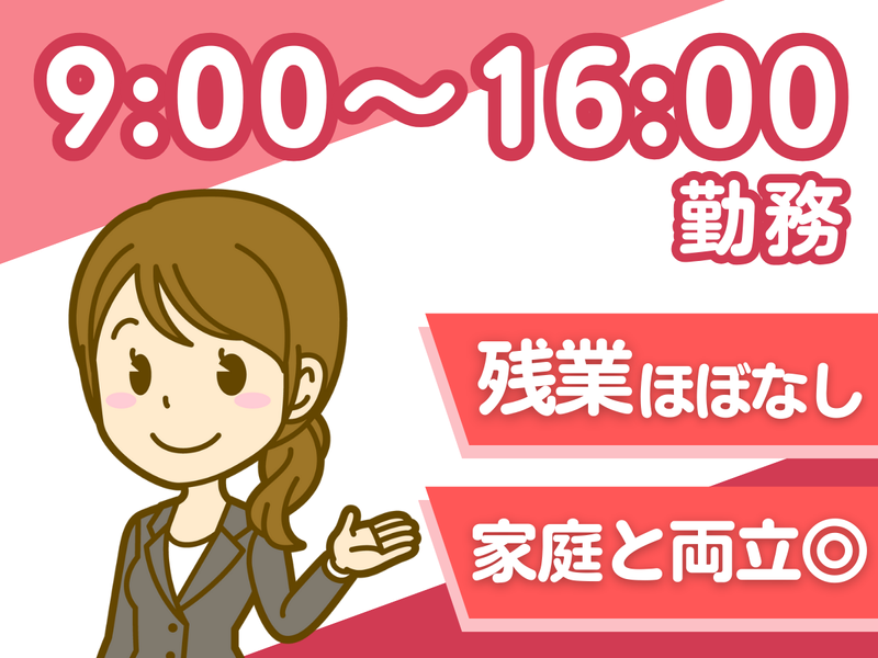 勤務時間詳細 9:00〜16:00(休憩60分) *週3日〜OK *残業は基本ありません *16時終業なので お子様のお迎え・夕飯準備にも余裕◎