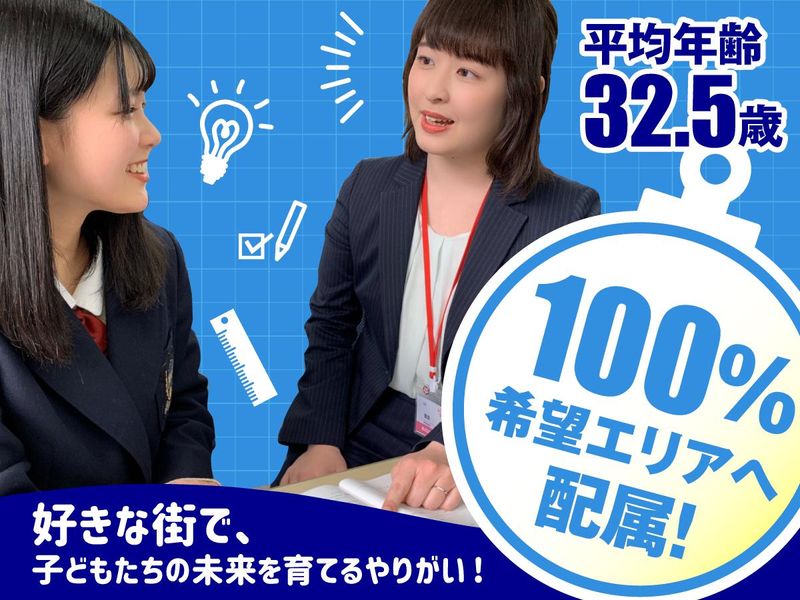 求めている人材 《★人柄重視の採用★》 「教育業界ははじめて」 「教育に興味はあるけど、学校の成績はあまりよくなかった…」 という方も大歓迎! あなたのチャレンジをしっかりサポートします。 さらに… 「2年後に教員試験を受けて先生を目指す」 といった先輩も活躍中。 「1~2年だけ働きたい」という方も歓迎します! \こんな方にピッタリ/ ◎子どもたちの未来をサポートしたい ◎馴染みのある地域で教育に貢献したい ◎新たな環境で挑戦してみたい ◎好きな街や地域の教育を支えたい ◎人の成長を助けることにやりがいを感じる \中途入社の約半数が異業種出身者/ アパレル販売、飲食店、不動産営業などさまざまな経歴の方が活躍中です。 個別指導塾なので授業メインではなくマネジメントがメイン業務です。 オンライン面談、教室見学もOKなのでお気軽にご連絡ください!