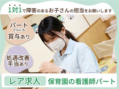 レアです!保育園の看護師パート求人☆《昼までor夕方までの短時間勤務》パートにも賞与支給予定あり★ブランクのある方・小児分野での経験がない方もぜひ◇【荒川区、南千住駅、保育園、看護師、日勤パート】
