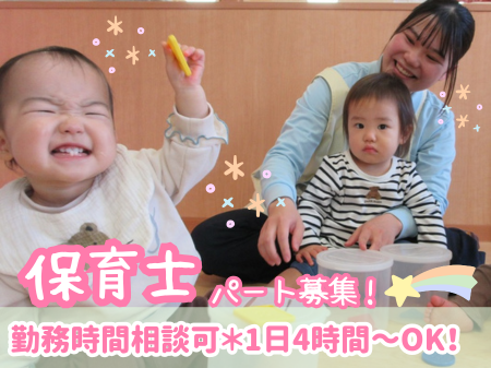 認可保育園の非常勤保育士 【入社お祝い金最大5万円】定員90名の認可保育園/園児が安心して元気に過ごすことができる環境を整え、子どもたちの主体的な活動を見守りながら一人一人に寄り添う保育を一緒にしませんか? 【Features 特長】 経験者歓迎 扶養内勤務OK 主婦・主夫歓迎 バイク・車通勤OK 新着求人 【仕事内容】 0歳児~5歳児の子どもたちの年齢や成長に応じた保育業務全般です。 ・着替え、食事の補助 ・保育環境の整備(主活動の準備、清掃等) ・保護者対応(連絡帳の作成等) ・帳票作成(日誌、行事計画等)