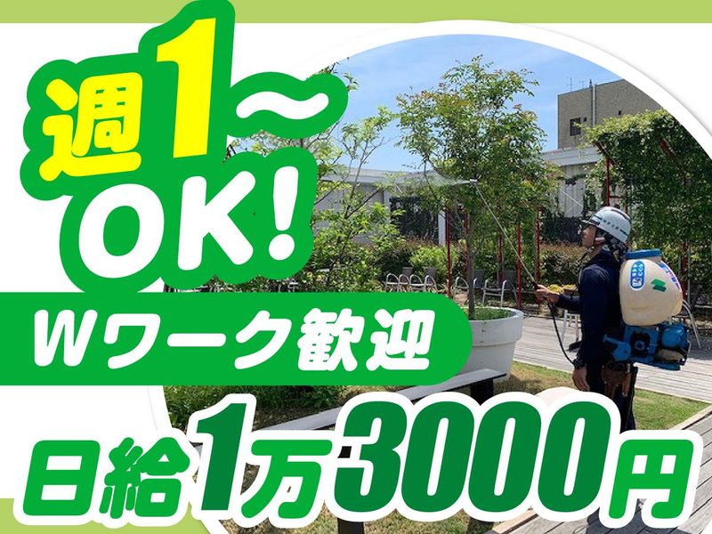 仕事内容 ◆━━━━━━━━━━━━━━━━━━━━━━━━━━━◇ 日給1万3000円✨週1日~OK(土日祝休み)✨ ✨副業・WワークOK✨都会を行き交う人々の心を和ませる小さな緑地。 そんな緑地メンテナンスのお仕事。サポートから始めるので安心して始められます。 ◇━━━━━━━━━━━━━━━━━━━━━━━━━━━◆ <具体的には> 人々がホッと一息つける緑地の 保守管理・メンテナンスのお仕事です! まずは… 【サポート補助業務・軽作業】 ・造園作業で切り落とした枝葉や刈った草の清掃。 ・手での除草や運搬作業をお任せします。 ・剪定や草刈り作業 最初は先輩のアシスタントとして 一緒に現場を回りながら、 道具の扱い方を覚えつつ、 仕事に慣れていただきます。 機械を使い木を切ったりと、 造園の仕事に挑戦していくことも。 段階的にスキルアップしていくことも可能です。 また意欲や適性、ご希望に応じて 案件担当者(リーダー)へ ステップアップすることも可能です。 キャリアプランは相談して決めていきましょう! ⇒担当する緑地は 東京・神奈川を中心とした 民間企業のビルや大学、公共施設など。 ※現場へは事務所から車で移動します。 \★この求人のポイント★/ ✅未経験大歓迎の軽作業 ✅週1日~OK(土日祝休み) ✅副業・WワークOK ✅日給1万2000円! ⇒時給換算すると1500円! 【✨手に職つけてスキルUPとキャリアUP✨】 仕事をやっていくうちに気に入った方は 正社員登用も目指せます! 資格取得支援もあるので、 無資格・未経験から手に職をつけ、 スキルUPや収入UPも 目指していけます 【✨こんなやりがいあります✨】 ・ビルの出入り口や屋上 ・ショッピングセンターの休憩スポット ・学生が過ごす大学構内 など みんなの憩いの場を守る仕事。 有名な施設も請け負っているので 「ここ、私たちがキレイにしているんだよ」 なんてちょっと誇らしい気持ちにも。 四季を楽しめながら働けるので 飽きが来ることはありませんよ♪