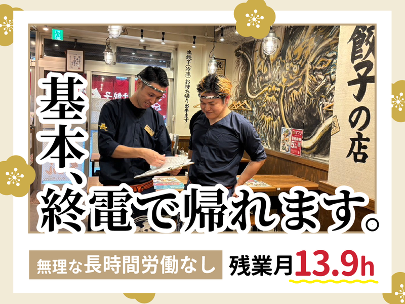 仕事内容 \この求人のポイント/ ⭐店長・マネージャー・教育など 多彩なキャリアパスあり ⭐全国展開中&出店拡大予定の 成長ブランド! ⭐年収700万円も目指せます! *未経験からでもキャリアアップ可能! キャリアの選択肢が豊富で 自分らしく成長できます◎ 安定基盤のもと、長く働ける職場です! *・―・*・―・*・―・*・―・*・―・* 創業15年!「肉汁餃子のダンダダン」 で正社員/店舗スタッフを募集!  ̄ ̄ ̄ ̄ ̄ ̄ ̄ ̄ ̄ ̄ ̄ ̄ ̄ ̄ ̄ ̄ ̄ お客様との会話や空気感を大切にした、 対面接客型の居酒屋です。 餃子とお酒を気軽に楽しめるお店として、 全国に展開しながら成長を続けています。 効率重視ではなく、 人と人とのやり取りの中で お店の価値をつくっていくスタイルを 大切にしています。 ご来店からお帰りまでの時間を、より 楽しく心地よく過ごしていただくために、 スタッフ一人ひとりの気配りや 声かけが活きる環境です。 *・―・*・―・*・―・*・―・*・―・* ✅お客様との距離が近い接客スタイル ご案内やオーダー、料理提供などの 基本業務に加え、会話の中で おすすめを紹介したり、 お客様のシーンに合わせた対応を 行います。 日々の接客の中で、やりがいや面白さを 実感できる仕事です。 【主な業務内容】 店舗運営に関わる幅広い業務を お任せします! ・席へのご案内 ・料理やドリンクの提供 ・レジでのお会計 ・片付けや清掃 ・仕込みなどのサポート業務 基本を身につけた後は、 サービス内容や店舗づくりにも アイデアを活かせます。 *・―・*・―・*・―・*・―・*・―・*