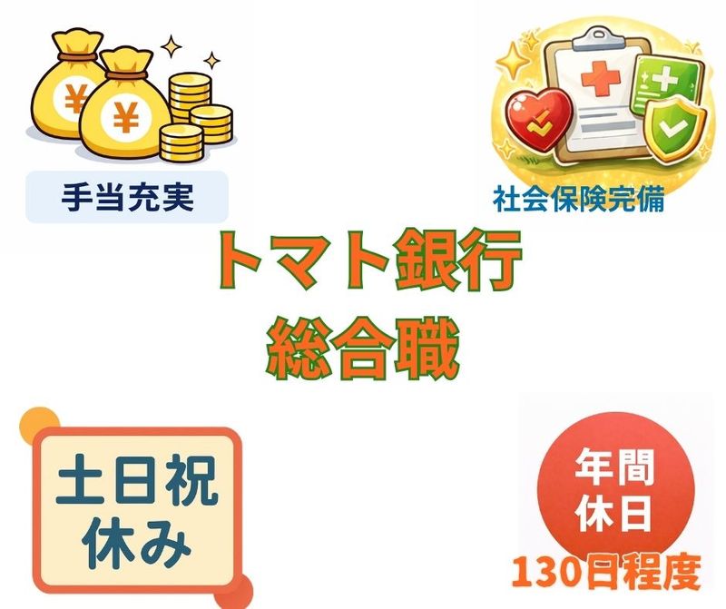 銀行・信用金庫での営業経験者募集株式会社トマト銀行年間休日130日程度土日祝休み