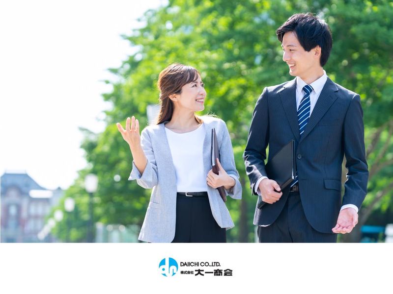 仕事内容 \創業50年以上の安定専門商社です/ 土日祝休み&残業少なめ&賞与年3回。 未経験からスタートできる 既存顧客中心のルート営業募集! ▼▼▼ 空気や水をつなぐ“配管資材”を扱う仕事。 問い合わせ対応中心なので、未経験でも 安心して営業デビューできます◎ ❖年休122日×家族手当なども充実❖ ―・―・―・―・―・―・―・―・―・―・―・―・― 土日祝休み+残業は多くて月20時間ほど。 賞与年3回+家族手当+昇給で収入も安定。 長く安心して働けるキャリアが手に入る♪ 「営業の仕事に興味はあるけど不安」 「休みが少なくて、正直しんどい」 「将来も続く安定企業で働きたい」 という方は、ぜひ最後までご覧ください。 ─────────────────── ……⭐今の職場と比べてください⭐…… 社員の生活を第一に考えた制度が充実! ─────────────────── ✅年間休日122日(土日祝休み) ✅月給23.4万円~25.7万円スタート ▶想定年収360万円~450万円 ✅賞与年3回(7月・12月+決算賞与) ✅昇給年1回(4月) ✅残業代は別途支給 ▶月20時間ほどで月3.5万円前後 ✅家族手当あり ▶配偶者/月1万円、扶養子/月5,000円 ✅奨学金手当あり ▶最大月2万円×最大5年間 ✅退職金制度(勤続3年以上) ✅財形貯蓄制度 ✅保養施設利用(リゾートトラスト) ✅育休復帰率100% ┏━━━━━━━━━━━━━━━━┓ ❖株式会社大一商会ってこんな会社 ┗━━━━━━━━━━━━━━━━┛ 創業50年以上の歴史を持つ専門商社。 工場や建築現場で使われる 配管資材を扱う企業です。 約500社との取引と 1万8000点以上の商品を扱う体制で 安定した成長を続けています。 ────────────────── ………⭐お仕事内容について⭐……… ────────────────── 製造工場や建設会社などの既存顧客へ 配管資材をご提案する営業です。 信頼関係を大切にしながら ニーズに合う商品を提案すること。 これがあなたの役割です。 …【仕事内容は大きく分けて3つ】… ①既存顧客への提案営業 ────────────────── ▨製造工場や建設会社などを訪問 ▨必要な配管資材のヒアリング ▨ニーズに合わせた商品を提案 ▶既存顧客が9割以上なので安心。 飛び込み営業は原則ありません。 ②問い合わせ対応・見積作成 ────────────────── ▨お客様からの問い合わせ対応 ▨見積作成・商品提案 ▨納期調整などのフォロー ▶定期交換が必要な商材なので 問い合わせベースの営業が中心。 ③納品フォロー・関係構築 ────────────────── ▨納品後のフォロー ▨追加注文の対応 ▨定期訪問で関係構築 ▶営業サポートメンバーとバディを組むので 事務作業の負担軽減。営業に専念できる♪ ────────────────── ………⭐生活を安定させる待遇⭐……… ────────────────── スタート月給は23.4万円~25.7万円。 ルート営業なので歩合制度はありませんが 毎年コツコツと着実に昇給。安心して長く 働ける給与設計です。 ―・―・―・―・―・―・―・―・―・―・―・― ▨年収410万円/25歳(入社3年目) ▨年収470万円/30歳(入社8年目) ―・―・―・―・―・―・―・―・―・―・―・― さらに家族手当や奨学金手当など 生活を支える制度もしっかり整備♪ ┏━━━━━━━━━┓ ❖応募をご検討の方へ ┗━━━━━━━━━┛ 当社は育成にじっくり時間をかける 方針なので、採用枠は限られています。 気になる方はお早めにご応募ください。