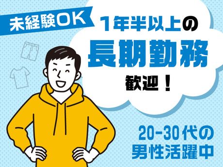 資格 \20代~40代の男性スタッフが多く活躍/ 歓迎! *体を動かす仕事が好きな方 *デスクワークよりもアクティブに働きたい方 *重い荷物の運搬に抵抗がない方 (商品の入った段ボールなどを扱います) *コツコツと作業に取り組める方 *未経験でも前向きにチャレンジできる方 *1年半以上の長期勤務が可能な方 ※60歳定年制