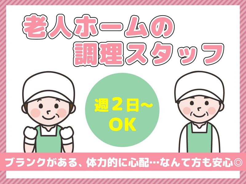 仕事内容 *1日6h~&週2日~OK!残業一切なし! *家事スキルを活かせるお仕事! *マニュアル完備で未経験も安心 *60歳以上のシニア応援 *ボーナス年2回 ==================== "自炊"をしてる方なら、大丈夫! ==================== 今回募集するのは老人ホームでの お食事をつくる調理スタッフ! 家事の延長で出来るお仕事です。 資格や特別なスキルは一切不要です。 献立表をもとに料理を作っていきますが、 季節や行事に合わせて献立を考えているので お正月・お花見・誕生日…等、イベント毎に 入居者に食事の楽しみを提供できるお仕事です。 最初は先輩が丁寧にお教えしますし、 マニュアルもあるのでご安心ください。 利用者さまの毎日を支えるという 介護業界ならではやりがいと 大量調理や刻み食・ミキサー食…と 高齢者向けの調理技術を学ぶ事も 出来るので専門知識も高まります。 シフト制で朝昼晩と3回お食事を作りますが 毎食55食程度を皆で分担して作って頂き ますので体に無理なく働いていただけます。 いつもの温かい食卓の延長に、 新しいやりがいを見つけてみませんか。 ==================== 家事・育児との両立や、Wワークにも! ==================== サクッと週2日だけの勤務も可能。 ブランクがあるので体力が心配…なんて方は まずは週2日から勤務してみませんか? 主婦(主夫)さん、学生さん、 フリーターさんも大歓迎! 有給消化率も80%以上、 自由度高く働いていただけます。 残業は一切ないので、残業で予定が 狂ってしまった…なんて心配も無用! 「扶養内で仕事がしたい」 「時間を活用して副業・Wワークしたい」 そんな方もぜひご応募ください! ==================== 福津の里について ==================== 全50室・三階建ての清潔感溢れる 「住宅型有料老人ホーム」です。 (※なにそれ?という方も大歓迎!) 各フロアにヘルパーステーションを併設、 デイサービス・訪問介護・看護を 連携させながら運営しています。 関連する「福津内科クリニック」と 緊密な医療サポート体制で 看護師さんも24時間365日常駐。 充実した設備で利用者さまの 生活をサポートしつつ、 スタッフみんなが働きやすい 環境づくりにも力をいれております。 事前の施設見学も大歓迎! まずはどんなところか見てみたい! という方は、ぜひお問合せください。