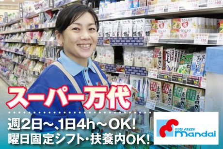 仕事内容 【 仕事内容 】 <見切り・POP作成> ・商品の値引き ・翌日の準備 など。 空いた時間に行うPOP作成は PCに商品名を入力し 決められた文言を選択するだけ! 専用ソフト使用でとっても簡単です♪ 値引き作業も専用の機械を使用するので 初めてでもスグできます◎ 【 仕事の流れ 】 <1日の流れ(例)をご紹介!> ▼出勤! スーパーに並ぶ商品の値引き作業スタート! ▼業務が落ち着いてくる頃♪~POP作成 ▼片付け ▼お仕事終了! 【 未経験でも安心! 】 <丁寧な研修&フォロー体制が自慢!> センスもスキルも一切必要ナシ! 社員やベテランスタッフが あなたのことをサポートします! <シフト相談OK!> ★週2~/4h~シフトは柔軟対応! 「Wワーク」「学業」との両立も相談可◎ 【 万代の魅力 】 <「万代スタッフに聞いた!」働く魅力をご紹介!> ・家から近く通勤しやすい! ・お仕事終わりに買い物ができる♪ ・新人さんも馴染みやすい◎ ・常連さんが気さくに話しかけてくれる! ・髪型・髪色は比較的自由! 自分らしく働ける環境で、のびのびと活躍できます。 「私でもできそう!」「やってみたい!」 そんな方はぜひご応募ください♪ スタッフ一同、あなたからのご応募お待ちしております!