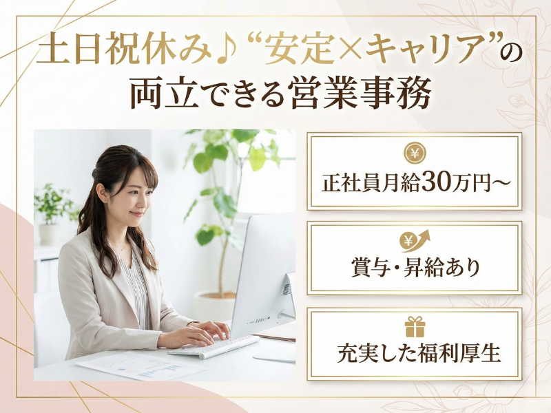 事務職デビュー◎/若手活躍中/月給30万〜
