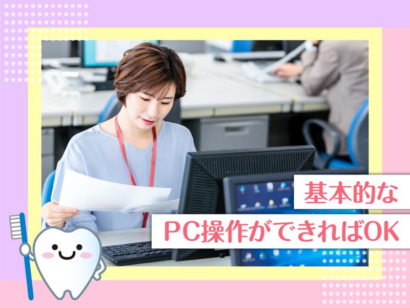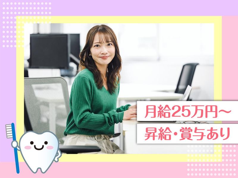 仕事内容 ₊˚✧ ── ── ── ── ── ──✧ ₊˚ 医療法人(訪問歯科)での一般事務 資格不要!医療業界未経験OK! ₊˚✧ ── ── ── ── ── ──✧ ₊˚ 【業務内容】 ・データ入力 ・書類作成、ファイリング ・請求、会計業務 ・電話、メール、FAX対応 ・各部署のサポート業務 など ◎院内での情報共有を大切にし、 患者さんに安心・安全な治療を届けるためのサポートをお願いします。 ◎各部署と連携を取りながら進めるため、 周囲とのコミュニケーションを大切にできる方にぴったりのお仕事です♪ ⭐<PCの基本操作ができればOK!> ―――――――――――――――― MOSなどの資格は必須ではありません。 先輩スタッフも未経験からスタートしており、 ⼊社後は丁寧なサポート体制のもと、安⼼して業務を覚えられます。 ⭐<プライベートも⼤切にできる働き⽅> ――――――――――――――――――― 完全週休2⽇制で、無理なく働ける環境です。 仕事とお休みのバランスが取りやすく、私⽣活との両⽴も◎ GWや夏季・年末年始の⻑期休暇に加え、産休・育休、リフレッシュ休暇など、 ライフステージに合わせて利⽤できる休暇制度が整っています ~当院について~ ―――――――― 当院は「痛くない治療で、患者さんにとって最良の歯科医院を目指す」をモットーに運営しています。 ・お子様には怖い印象を与えない配慮 ・親御さんが安心して治療に専念できる環境 ・地域に密着し、ひとりひとりの希望に寄り添った治療 事務スタッフも、その理念に共感しながら働ける環境です。