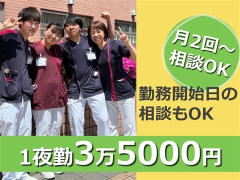 大宮中央総合病院 求人概要 大宮中央総合病院:看護師/夜勤アルバイト/夜勤アルバイト 1夜勤3万5000円◎駅徒歩5分!まずは見学からでもOK☆月2回から勤務回数相談可能◆勤務開始日は応相談!【さいたま市北区・鉄道博物館駅・総合病院/病棟・看護師・夜勤アルバイト】 職種 看護師/夜勤アルバイト 所在地 〒331-0814 埼玉県さいたま市北区東大成町1丁目227 給与 日給3万5000円(1夜勤) 求人詳細 1夜勤3万5000円◎駅徒歩5分!まずは見学からでもOK☆月2回から勤務回数相談可能◆勤務開始日は応相談!【さいたま市北区・鉄道博物館駅・総合病院/病棟・看護師・夜勤アルバイト】 「鉄道博物館駅」より徒歩5分でアクセスできる通いやすい職場です!夜勤アルバイトにも医療費還付制度をご用意しています★お気軽にご連絡ください◎ 職種 看護師/夜勤アルバイト 仕事内容・PR ▼△▼ 夜勤アルバイト/看護師の求人 ▼△▼ ▼△▼ 業務内容 ▼△▼ 総合病院/病棟での夜間看護業務をお願いします。 ▼△▼ 配属について ▼△▼ 病棟の配属先はご希望を考慮して相談させていただきます。 勤務の開始日は相談可能! まずは見学にお越しください☆ 雇い入れ後の業務内容の変更の範囲および就業場所の変更範囲の詳細は面談時にお伝えします。 雇用形態 夜勤アルバイト 契約期間 雇用期間の定めあり 年度末更新 契約更新あり 原則更新