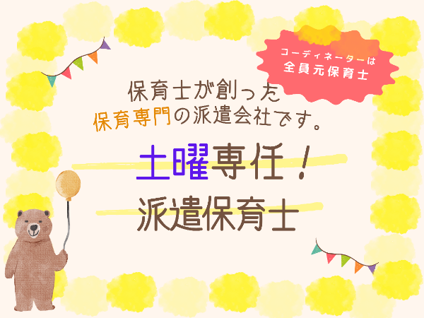 【土曜のみ】発達支援センターでの支援業務♪年度内でもR8年4月~でも勤務相談!/ YSK1226@有資格 保育士 土のみの発達支援 神奈川県川崎市中原区新城 派遣社員 求人の特徴 オンコールなし 原則定時退社 固定シフト制 土日祝のみ OK 夜勤なし 完全週休二日制 年間休日 120 日以上 残業なし 残業ほぼなし 深夜勤務なし 週 1 日から OK 大卒 専門卒 短大卒 認可保育園 インフルエンザ予防接種無料 ゴールデンウィーク休暇あり 交通費全額支給 交通費支給 年末年始休暇あり 有給休暇あり 連続休暇取得可能 40 代も応募可 50 代も応募可 60 代も応募可 U・I ターン歓迎 ブランク OK フリーター歓迎 主婦・主夫歓迎 子育て世代歓迎 学歴不問 新卒歓迎 未経験者歓迎 業界未経験者歓迎 経験浅め歓迎 急募 転職回数不問 カジュアル OK 駅近 5 分以内 業務内容 ●毎週土曜日のみの、2歳~小学4年生のお子さんたちの発達支援のお仕事です。 ●午前・午後と1名づつのお子さんを担当していただき、保護者も含めた対応をお願いする予定です。ただし、保護者の方には複数名で担当すると説明している為、お休みも取りやすい環境です! ●日々のカリキュラムの作成はありますが、内容は決まったものの組み合わせになります。作成も担当の方が一緒に確認もしていただけるので安心。 ・・・・・・・・・・・・・・・・・・・・・・・ あんだんてでは求職者一人ひとりの状況を詳しく聴かせてもらい、そしてあんだんてという会社・担当コーディネータのことを知ってもらうことも大事にしています。相性もありますからね! その結果、条件面だけでなく園の方針やカリキュラム、連絡帳の有無(形式)など細かなことまで、一人ひとりの希望にあった園がご紹介できると考えています! 就業後も希望者には月1回の訪問や三者面談などを実施。仕事の悩みやご不満だけでなくプライベートの悩みも相談に乗りますよ! ※もし担当コーディネータと相性があわない場合は気軽にお知らせください!別の担当を紹介します! ・・・・・・・・・・・・・・・・・・・・・・・ ★この募集求人を担当するコーディネータを紹介★ 担当の西﨑です! 業務内容で不明な点や就業後のお困りごとなど何でも相談ください! <プロフィール> 【保育士キャリア】保育園、4年 【好きなもの】お酒(特にビールと日本酒)、旅行 【性格】元気が取り柄☆ちょっとせっかち。お話大好き! 【特徴】推し活・妊活、〇〇活してる人を応援したい! 【習性】子どもや若者が頑張っているところと動物が健気な姿を見ると秒で泣きます(笑) 【特技】 ・都内の電車乗り換えは路線図なしで言えます!(神奈川勉強中!) ・初めての土地でも1度で道のりを覚えられます! ・リサーチするのが得意☆(地域の特徴や美味しいお店、住まいなどなんでも調べます!) 直接お目にかかれる機会を楽しみにしています!! ※当社が雇用する派遣スタッフとして派遣先で勤務いただきます 職種 保育士 土のみの発達支援 雇用形態 派遣社員 勤務体系 固定時間制 リモートワーク制度 リモートワークなし 勤務先事業内容 保育士、幼稚園教諭、栄養士・調理師、保育園・幼稚園事務の派遣と紹介、及び人材コーディネート 研修プログラム作成 ペーパー保育士研修?・・その他派遣