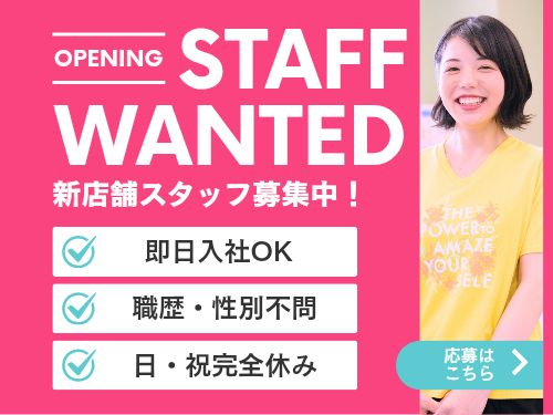 資格・経験 59歳以下(定年60歳のため) 普通自動車運転免許 「資格・経験・職歴は不要です!」 ・性別不問 ・ジム経験ゼロでOK 特別なスキルも必要ありません! 介護・営業・接客・販売・飲食・アパレル・保育など、 人と関わる仕事の経験はしっかり活かせます! もちろん、まったくの未経験スタートも歓迎! 「やってみたい」その気持ちがあればOKです!