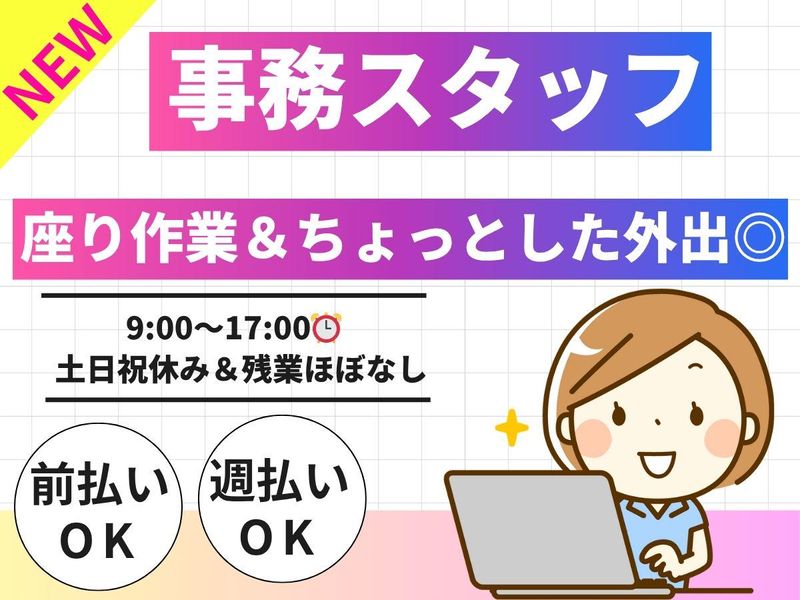 仕事内容 ・:・。*。・:・。*。・:・。*。・:・。*。・:・。* ✨PC作業が得意なら未経験もOK✨ データ入力中心の事務スタッフ ・:・。*。・:・。*。・:・。*。・:・。*。・:・。* ⏩日勤×土日祝休み&長期休暇あり✨ ⏩室内で座り作業&ちょっとした外出も◎ ⏩残業ほぼなし!プライベート充実☘ ⿻*.·┈┈┈┈┈┈┈┈┈┈┈┈┈┈◍◌ ▼お仕事内容はこちら ―――――――――― 電熱ヒーターなどを製造している 工場での事務をおまかせ! ✅ExcelやWordでの書類作成 ✅数値や個数などのデータ入力 ✅書類のファイリング ✅現場の簡単なサポート (書類のお届け・郵送など) ✅その他随時業務 など、簡単なPC作業を中心に 事務作業をお任せします。 ★デスクワーク中心のお仕事ですが、 書類の受け渡しなどで 外出する機会もあるため、 体を動かすのが好きな方にもピッタリ◎ ★事務未経験の方、経験が浅い方、 ブランクがある方も歓迎!! 丁寧にお教えしますので 安心してご応募くださいね♪ ◌◍┈┈┈┈┈┈┈┈┈┈┈┈┈┈⿻*.· ╭━━━━━━━━━━━━╮ ⛅働きやすさのPOINT⛅ ╰━━━━━━v━━━━━╯ ⭐土日祝休み❗ 完全週休2日制でメリハリ勤務! 予定が立てやすいとスタッフから好評! ⭐前払い・週払いOK❗ 急なお誘いや予期せぬ出費にも 役立つ、スタッフに大好評の制度です♪ ⭐お友達紹介制度あり❗ 紹介したご友人が入社した際に 紹介者に5万円をプレゼント❗✨ ⭐来社なし♪応募~内定まで自宅で完結❗ オンライン面接だから、ラクラク☘ ★入社前に必ず職場見学があるので安心! ╭────────────・⭐・・─╮ .電話番号 ▶▶ 029-869-5900 .お気軽にお問い合わせください♪ ╰─・・⭐・────────────╯