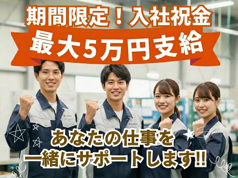 求めている人材 ・決まった手順で作業するのが得意な方 ・落ち着いた環境で働きたい方 ・勤務日数がまとまっている働き方を希望される方 経験・資格・学歴は問いません。 異業種からスタートしている方も在籍しています。 <活躍中のスタッフ> 23歳女性「初めての工場勤務でしたが、座り作業が多く体がラク。すぐ覚えられました。」 38歳女性「子育て後の復帰にピッタリ。快適で長く働けそうです。」 39歳男性「以前の職場は力仕事が大変でしたが、ここはシンプルで続けやすいです。」
