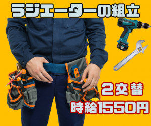 2交代/ドライバーやレンチ使ってラジエーターの組立/月31万