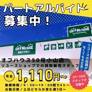 インフォメーション 主婦(夫)さん・学生さん・フリーターさん・Wワーカーさんがお仕事しやすいシフト勤務★ご自分の予定を優先しやすいお仕事です! ◎オフハウス50号小山店取扱商品 家具・インテリア・家電製品・洋服・和服 腕時計・生活雑貨・スポーツ用品等 ・社員4名、パートアルバイト14名の18名 ・男女割合 2:8 ・20代、30代、40代、50代 ・主婦(夫)さん ・フリーターさん ・Wワーカーさん ・学生さん オフハウス50号小山店は 株式会社ヌマニウコーポレーションの 運営店舗です。 アピールポイント ※積極採用中のお仕事です 自分力バロメータ コミュニケーション力 協調性 積極性