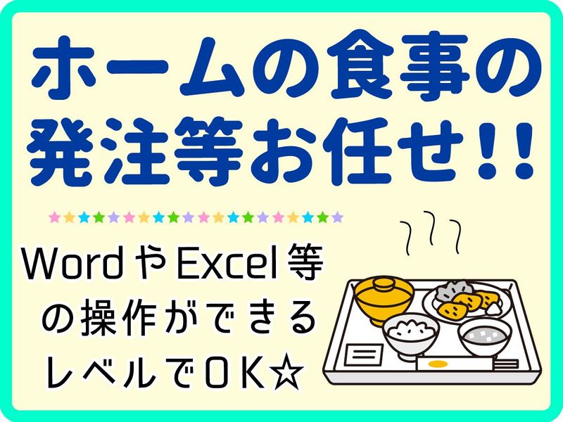 仕事内容 *+:。:+* ゜*+:。:+* ゜ 高齢者住宅内で、事務や調理補助をお願いします。 ・PCを使っての事務業務(Word、Excel、PowerPoint等を用いての作業) ・発注業務(発注アプリで数値入力) が中心です◎ ・食材の検品 ・盛り付け、差し込みなど 希望時間帯によっては厨房内の業務もお願いします。 *+:。:+* ゜*+:。:+* ゜ <人気の事務!> ~~~~~~~ 無資格・未経験者歓迎! 特別なスキルは不要&厨房内は家事の延長でできる作業ばかり!未経験の方でもすぐに活躍できます! ★人の役に立つ仕事がしたい ★料理が好き ★事務経験を活かしたい そんな方にピッタリのお仕事です! <高級シニア住宅> グランクレール世田谷へのアクセス ~~~~~~~~~~ ■東急田園都市線「用賀駅」より徒歩17分 他、「桜新町駅」「上野毛駅」等からもアクセス可能です。 *バイク・自転車通勤OK! 給食委託業界のリーディングカンパニー! ~~~~~~~~~~~ 株式会社グリーンハウスは、給食委託業界のリーディングカンパニーとして、 会社、工場、学校、病院、老人ホームなどの食堂運営、給食提供の業務をはじめ、レストラン・デリカショップ運営、ホテルの経営受託などを一手に担い、 国内のみならず海外にも事業展開を拡げている安定企業。 そのグリーンハウスのヘルスケア事業を創業より70年以上担ってるのが、当社「株式会社グリーンヘルスケアサービス」です。 「人に喜ばれてこそ会社は発展する」の経営理念もと、日々急成長を続けています。 そんな当社でなら、働きながらじっくりと大きなキャリアUPも可能! 「食のプロ」や「接客のプロ」としての知識を身に付けながら、幅広い専門スキルや資格取得を目指すことも可能です。 働き方もしっかり考えてくれるので、帰宅後の勉強時間なども無理なく確保できますよ◎