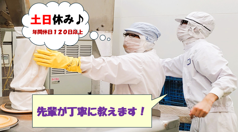 仕事内容 粉体食品(調味料・ミックス粉など)の製造工場で、 ゼネラルパッカー社製の自動包装機を中心とした機械操作・調整・メンテナンスを担当していただきます。 包装機(ゼネラルパッカー)の設定、運転、切替作業 包装資材やフィルムの交換、トラブル対応 機械まわりの清掃・簡単な保守作業 生産記録の記入、品質確認 など 扱う製品は粉体が中心で、クリーンな環境での作業となります。 スーパーやコンビニなどで 販売されている有名食品に携われます! 間違いなく目にしたことがあったり 食べたことがある「有名商品」や「人気商品」の製造をしています。 ☆主にこんな商品を作っています☆ 粉末スープ(コーンスープ) 粉末ドリンク(ココア・抹茶ラテ) ミックス粉(唐揚げ粉・ホットケーキミックス) などの粉末の製品が主です。 その他、ドレッシングや焼き肉のたれ、惣菜などもつくっていて いろんな商品の製造に携われる所が魅力です♪ ✅年間休日120日! 基本は土日休みでメリハリ勤務可能! ✅大手グループだから長期で安定! ・・━━・・━━・・━━・・━━・・━━・・━━・・ ▽具体的なお仕事内容 *小袋充填機オペレーター 混ぜた粉を「大袋」や「小袋」などに入れる機械が 袋に決まった量(例えばスープの粉を5グラム)が入っているか 機械がちゃんと動いてるか見守ったり、機械の操作をしていきます。 袋がしっかり閉じているかを目で確認したりするお仕事です。 *粉末製品のブレンド・原料投入 原料をブレンドをする機会に決まった量の投入をしていくお仕事です。 *液体製品の調合、充填機オペレーター 混ぜた液体を「ビン」「ペットボトル」などに入れる機械が きちんと動いているか、液体がこぼれずに同じ量で入っているか見守る フタや袋がちゃんと閉じているか確認する 機械が止まったときに直したり掃除をする *シフト・スタッフ管理 など パートアルバイトさんの管理や指示なども 徐々にお任せしていきます ・・━━・・━━・・━━・・━━・・━━・・━━・・ ⭐⭐⭐ おすすめポイント ⭐⭐⭐ ✅基本は土日休みでメリハリ勤務可能!  ̄ ̄ ̄ ̄ ̄ ̄ ̄ ̄ ̄ ̄ ̄ ̄ ̄ ̄ ̄ ̄ ̄ ̄ 完全週休2日制(土日)で長期休暇もあり、 オンオフを切り替えて働けます◎ ╭━━━━━━╮ ✤ さらに! ✤ ╰━v━━━━╯ 業務中に着用する制服は 持って帰らなくてOKです! 会社で洗濯してくれるので、 家での洗濯は必要なし♪ ………………………………………………… 【HP】https://ufi.co.jp/