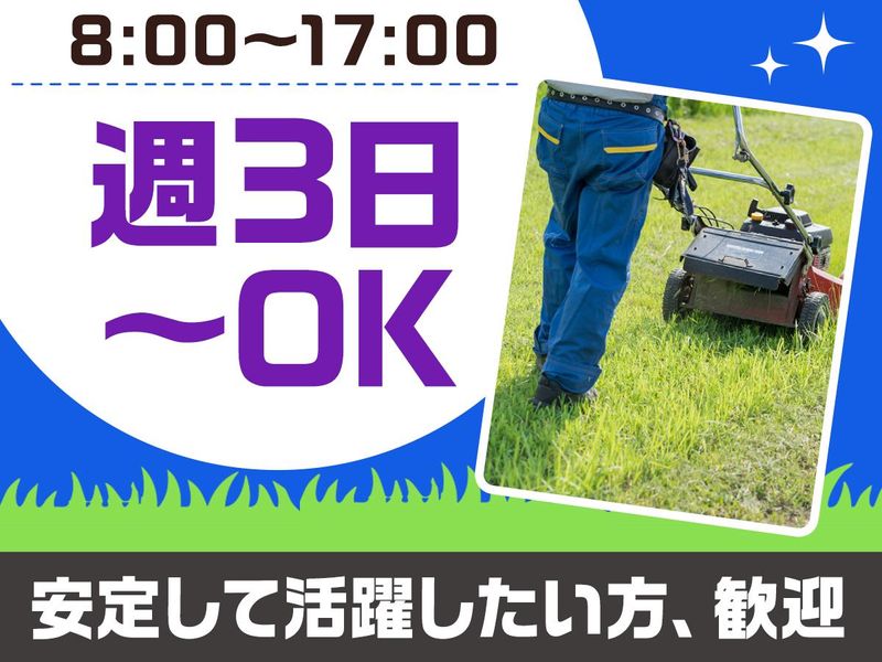 仕事内容 <資格不要・未経験OK!> ⭐大学キャンパス内での緑地管理スタッフ 【業務内容】 ◆芝生や植栽のお手入れ ◆落ち葉やごみの清掃 など ✅草刈り機やチェーンソーを使用した作業あり ✅初めてでも講習会で資格取得可能 ✅造園や植栽に興味がある方、大歓迎! 日常管理なので、難しい作業はありません! 丁寧に教えるので未経験の方でも安心です。 \未経験からのスタートも大歓迎♪/  ̄ ̄ ̄ ̄ ̄ ̄ ̄ ̄ ̄ ̄ ̄ ̄ ̄ ̄ ̄ ̄ ̄ ◇接客ナシ! ◇経験やスキル不問! ◇1から丁寧に教えていきます \週3日~勤務OK!/  ̄ ̄ ̄ ̄ ̄ ̄ ̄ ̄ ̄ ̄ ◇ 自分のペースで長く続けやすい ◇ 家庭や趣味との両立も◎ ◇ ミドル~シニア世代活躍中 \正社員登用もあり!/  ̄ ̄ ̄ ̄ ̄ ̄ ̄ ̄ ̄ ̄ ̄ まずはアルバイトからスタートして、 「もっと働きたい」「安定して働きたい」 という方には正社員登用制度もご用意! 実際に未経験からスタートし、正社員として活躍しているスタッフも多数います♪