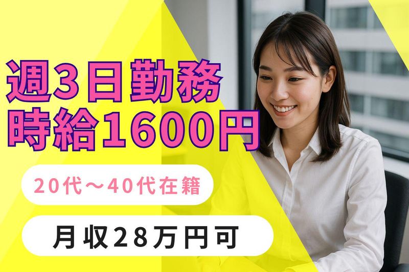 <月収28万円可>即日可!週3日勤務ok!即日勤務可能!