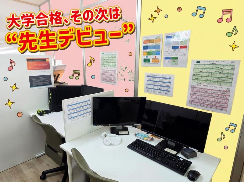 仕事内容 ╭━━━━━━━━━━━╮ 大学合格、その次は “先生デビュー” ╰━━━━━━━━━━━╯ 「塾講師って大変そう…」 そう思っている方にこそ、知ってほしい仕事です。 当塾は、講師1名につき生徒基本3名(最大4名)まで。 大勢の前で話す授業ではありません。 目の前の子どもと、落ち着いて向き合うスタイルです。 ╭━━━━━━━━━━━╮ 準備ほぼなし 報告は140文字 ╰━━━━━━━━━━━╯ 授業前の長時間準備はありません。 指導報告も1回約140文字。 5分ほどで書ける内容です。 小学生(60分×2コマ)は 算数・国語の基礎サポートが中心。 国語はワーク形式なので、 実質算数ができればOKです。 中学生(80分×2コマ)は 英語・数学の高校受験対策。 他教科は映像授業を活用しています。 ╭━━━━━━━━━━━╮ 生徒は長期継続型 関係が築きやすい ╰━━━━━━━━━━━╯ 小学生から通い続ける生徒が多く、 顔ぶれが頻繁に変わることはありません。 「先生、できた!」 その一言を、数年単位で見守れます。 現在、18歳の大学1年生も活躍中! 未経験から始めた先輩がほとんどです。 初バイトでも大丈夫。 ここは“いきなりプロ”を求める場所ではありません。 少しずつ先生になれる場所です✨